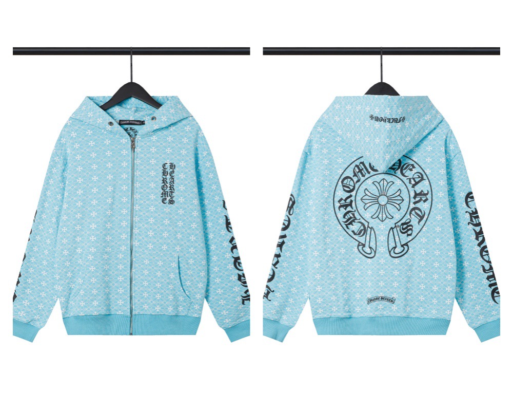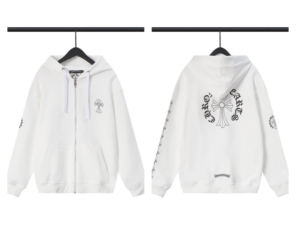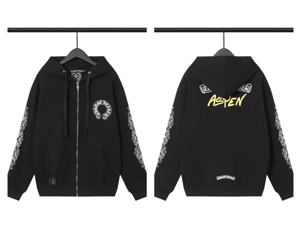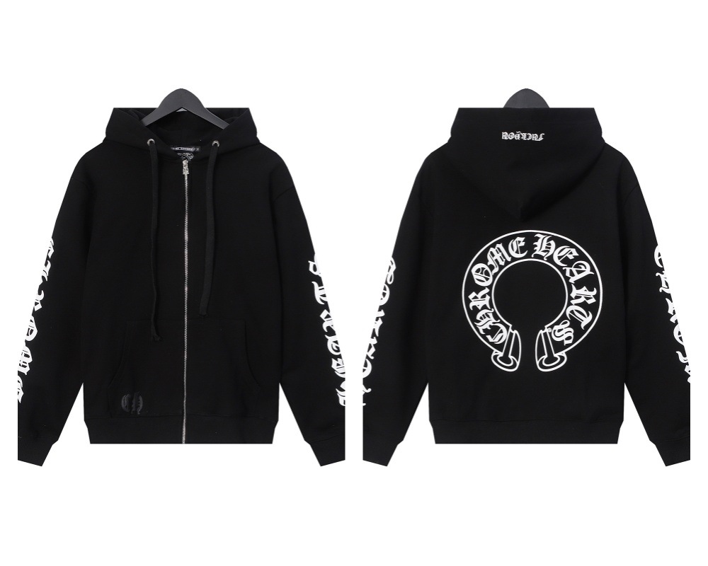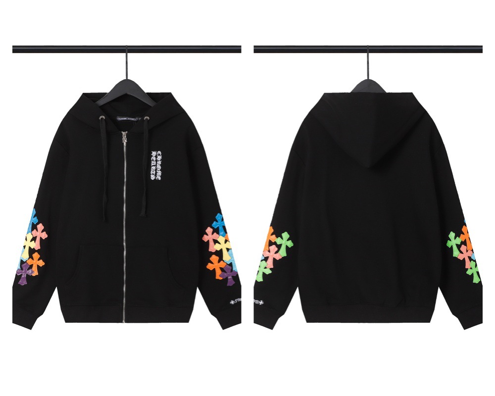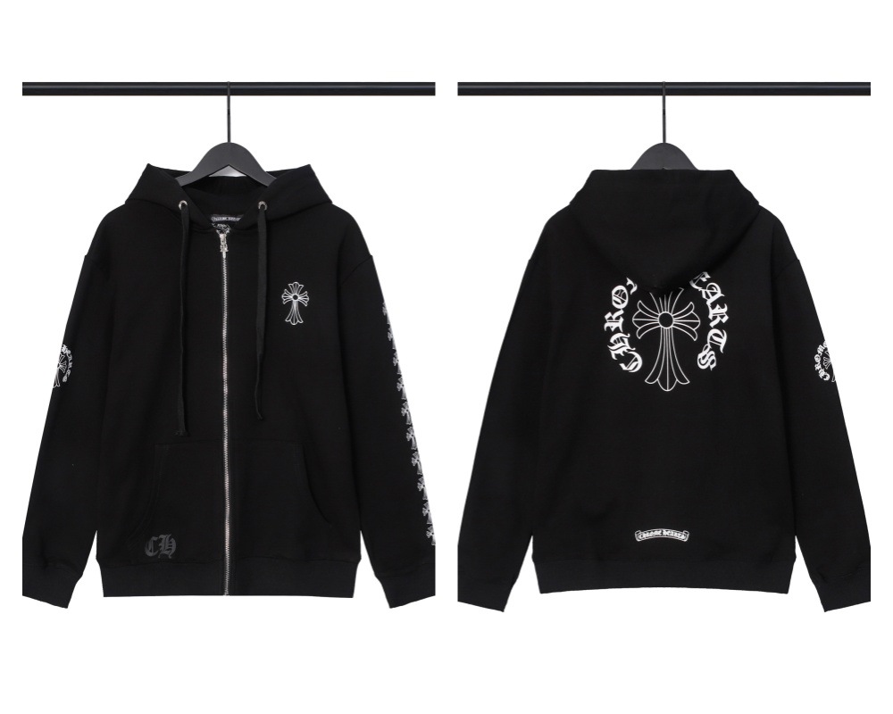 Cross-border Croda CH Autumn And Winter New Cross Horseshoe Hooded Zipper Cardigan Jacket For Men And Women Factory Straight Hair